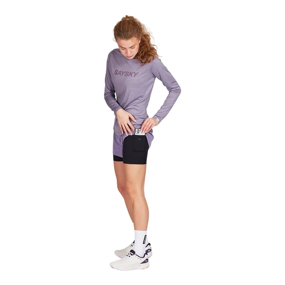 The SAYSKY 2 in 1 Pace Shorts 3” is one of their most popular styles. This version is for women and comes with a inner pants. There’s a woven SAYSKY label on the front and a SAYSKY logo on the back. The fit is regular and they’ll serve you well whether on the run or in the gym. This style is also ideal for trail running.