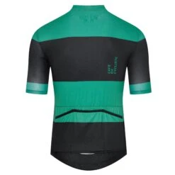 A full length zip allows for maximum ventilation in and out of the saddle, and a low profile collar keeps things even cooler. The jersey has mesh side panels, a more extreme cut at the front for race-bike positions, and the sleeves are tailored for aerodynamic coverage. The hem uses silicon gripper with Café du Cycliste branding for a snug fit.