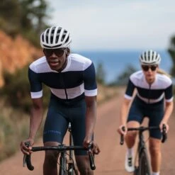 The jersey sports big Breton stripes for swashbuckling summer rides, and there are three cargo pockets, plus a low-profile zipped valuables pouch at the rear. Contrast Café du Cycliste branding is printed on the back, and a small reflective tab on the tail of the jersey aids your visibility to other road users.