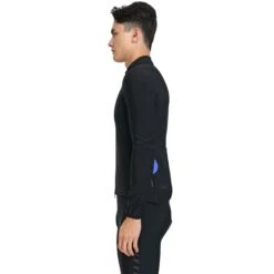 The complete construction is realised in a durable material that integrates a Schoeller C-change membrane to be totally waterproof and windproof to shut out rain, snow and the coldest gales. The fabric’s internal surface has a fleecy, waffle format that retains heat cosily next to the body and arms but prevents overheating by affording high breathability. The panels are joined via thermo-taped seams, and these, along with the waterproof zip, ensure no water ingress, even during the heaviest downpours.