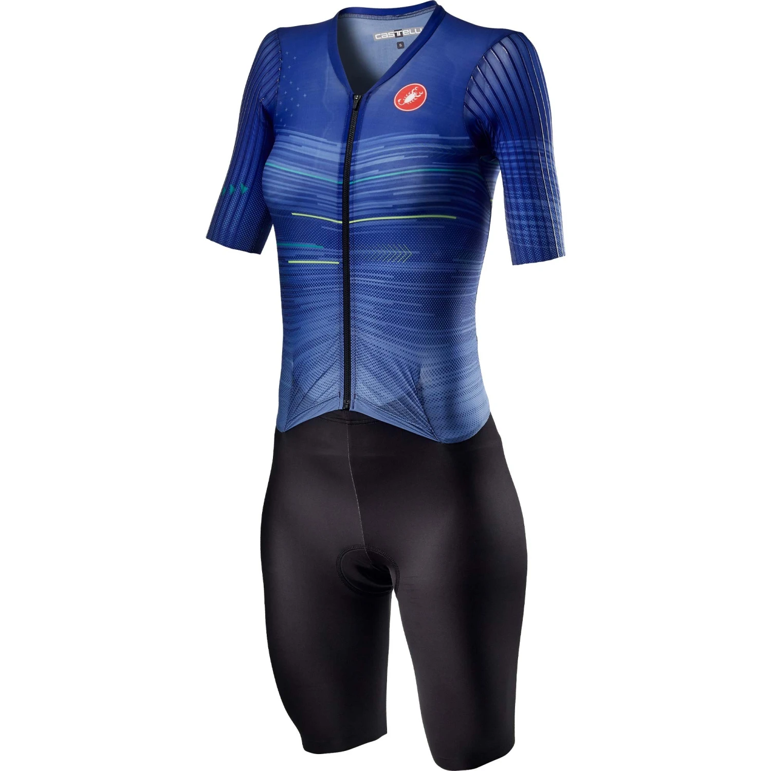 Designed to give you an aero advantage on long-distance races, the Castelli PR Womens Short Sleeve Speed Suit is the fastest suit they have ever developed. Ultra-fast and incredibly comfortable, the 50-denier upper body fabric is smooth, thin and lightweight, built for maximum aerodynamic performance on long endurance efforts. Developed to disrupt the air and reduce overall drag, silicone speed ribs are featured on the sleeves, and extended sleeves further streamline the suits profile.