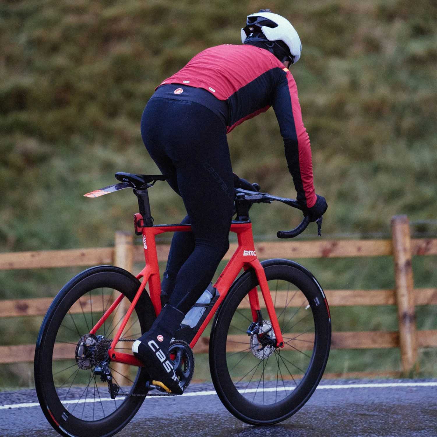 A great option for colder autumn and winter rides in both dry and wet weather, the tight features Castelli’s Kiss Air2 pad for all day comfort and has 360° reflective panels at the bottom of each leg as well as a classy tonal logo on the thigh. Meanwhile, there are zips at the ankles to help when putting it on and the straps are made from mesh so as not to cause breathability and wicking issues under winter layers.