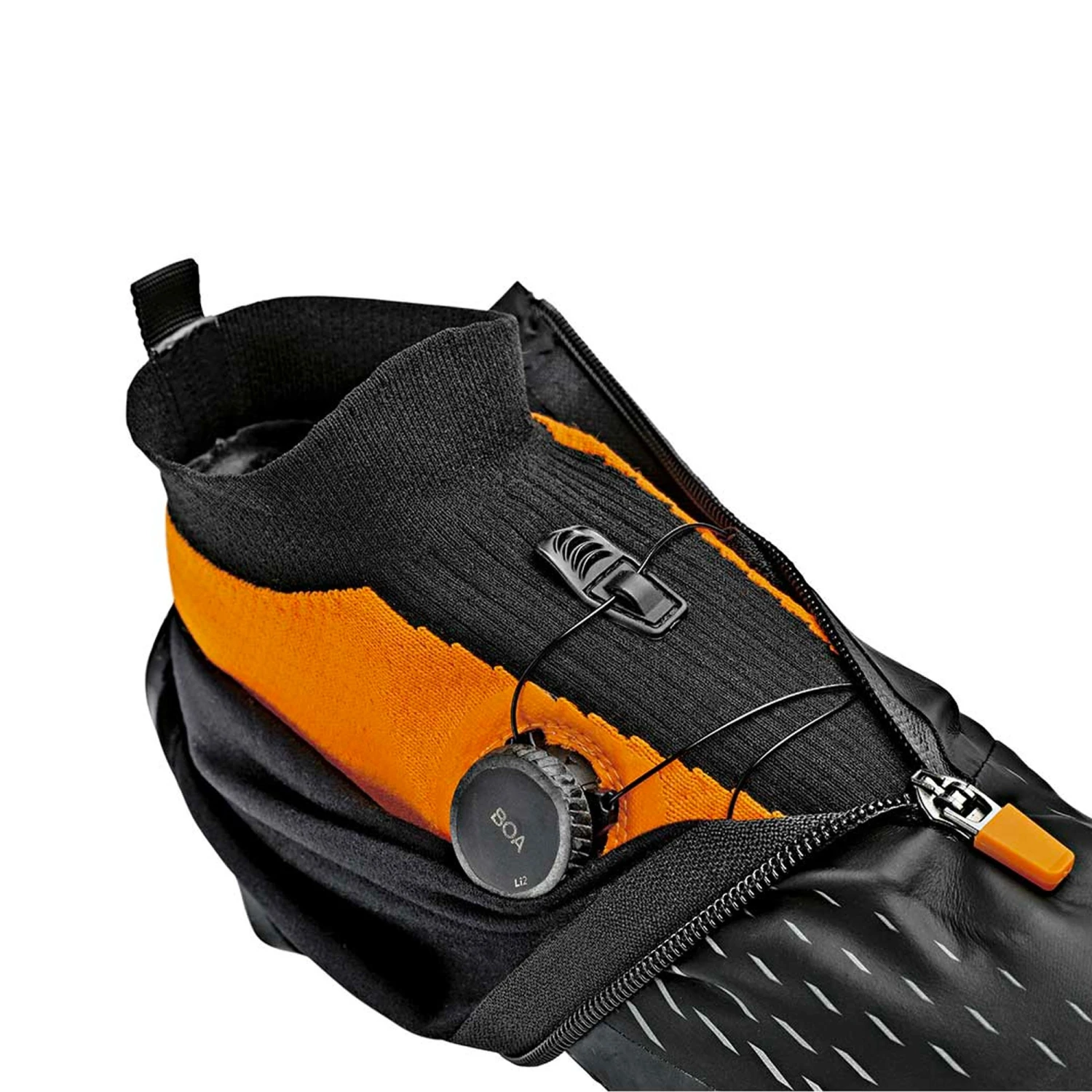 An Li2 Boa dial secures the inner shoe with a water-resistant zip sealing the outer cover. The aggressive sole unit provides grip in muddy, winter conditions and there is even the potential to add toe studs should traction really be at a premium.