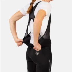 The point of difference for the Endura FS260 Pro DS Women’s Bib Short is its DropSeat function, by which means the comfort of a bib short has been combined with the convenience of a strapless short. The stretchy material and strap configuration allow the rear of the short to be dropped for toilet breaks without the need to remove any clothing – particularly useful when layered up in the winter. Low profile, raw-edged hems prevent the short from riding up uncomfortably and the pre-curved race fit ensures that the short fits perfectly when in the riding position.