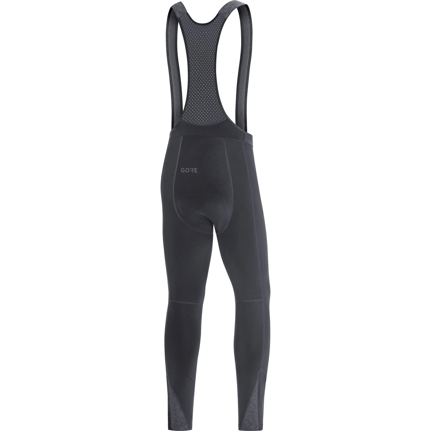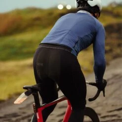 Gore Wear’s C5 Thermo Bib Tight is intended for use in cold, dry conditions, with the thermo-stretch fabric concentrating on insulation rather than offering total protection against wind and rain. However, GORE® WINDSTOPPER® Cup Technology has been used around the groin in order to keep cold air off the lower stomach and more delicate areas, and the whole tight benefits from a DWR treatment to ward off light rain and road spray.