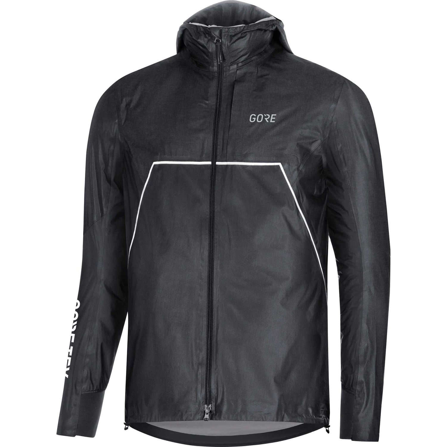 The Gore Wear R7 Gore-Tex Shakedry Trail Running Jacket is ready for anything. The waterproof and windproof Gore-Tex keeps out the worst weather, impenetrable Shakedry technology sheds water and prevents the jacket from ever getting wet through and it’s tough enough to fend off abrasions and possible tears from low hanging branches. In short, it has got your back. The hood, which also has an integrated visor, can be adjusted with the drawcord for a perfect fit and the collar is ergonomically shaped for comfort around the neck.