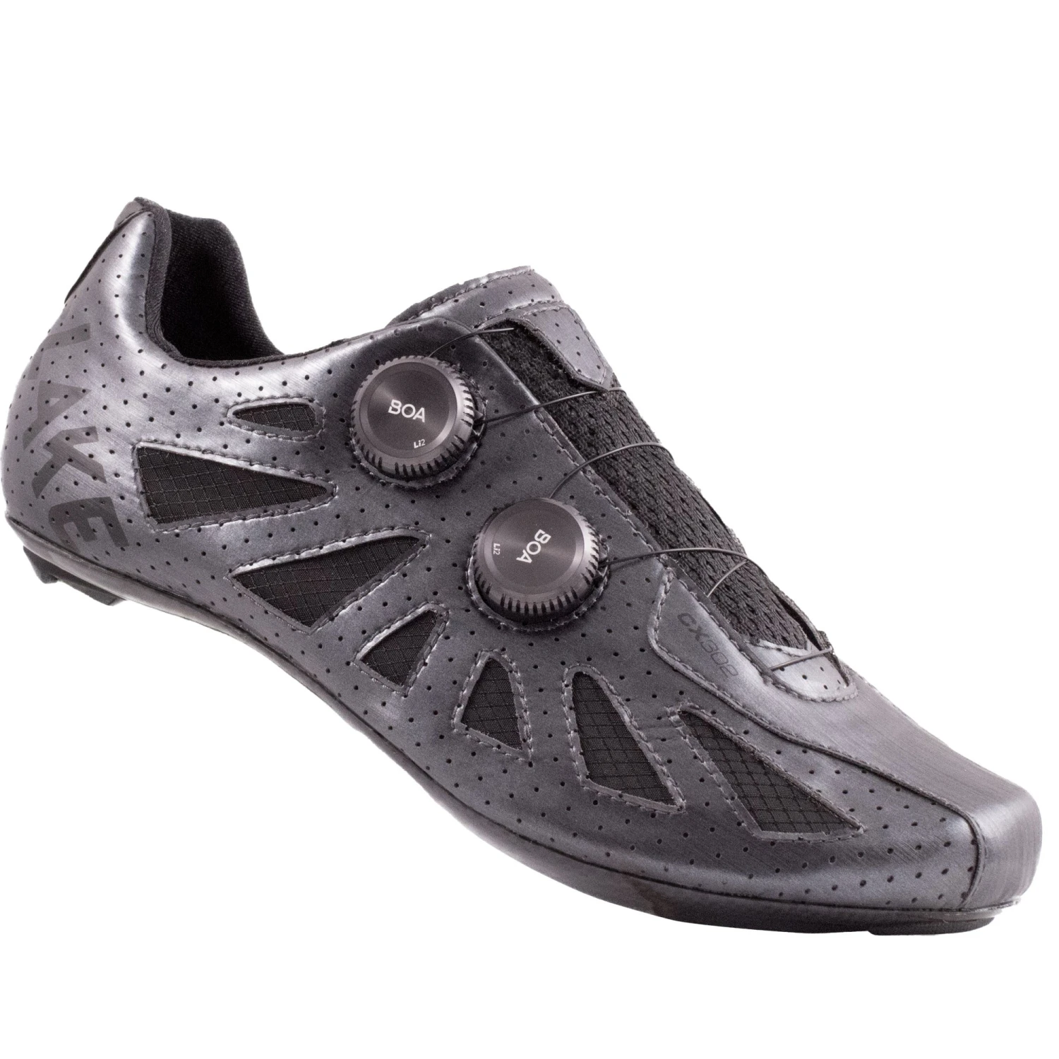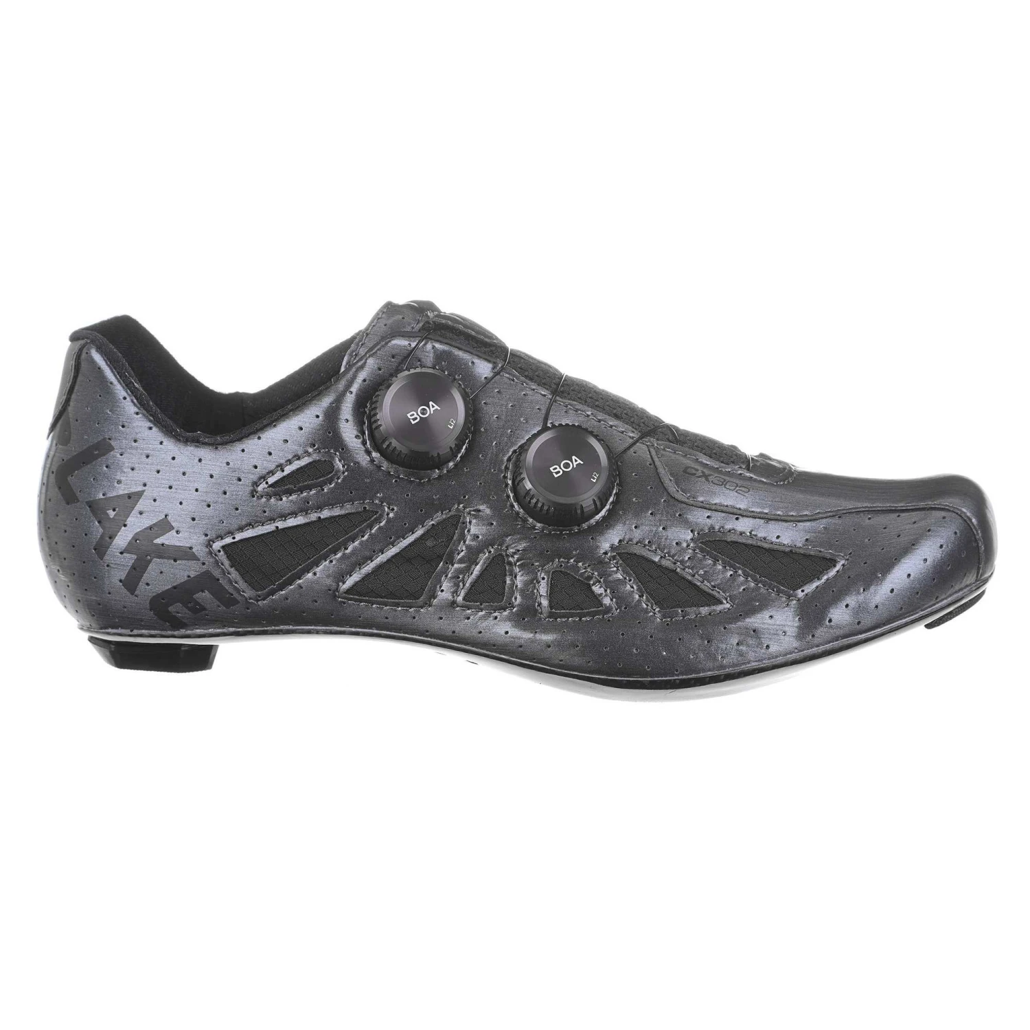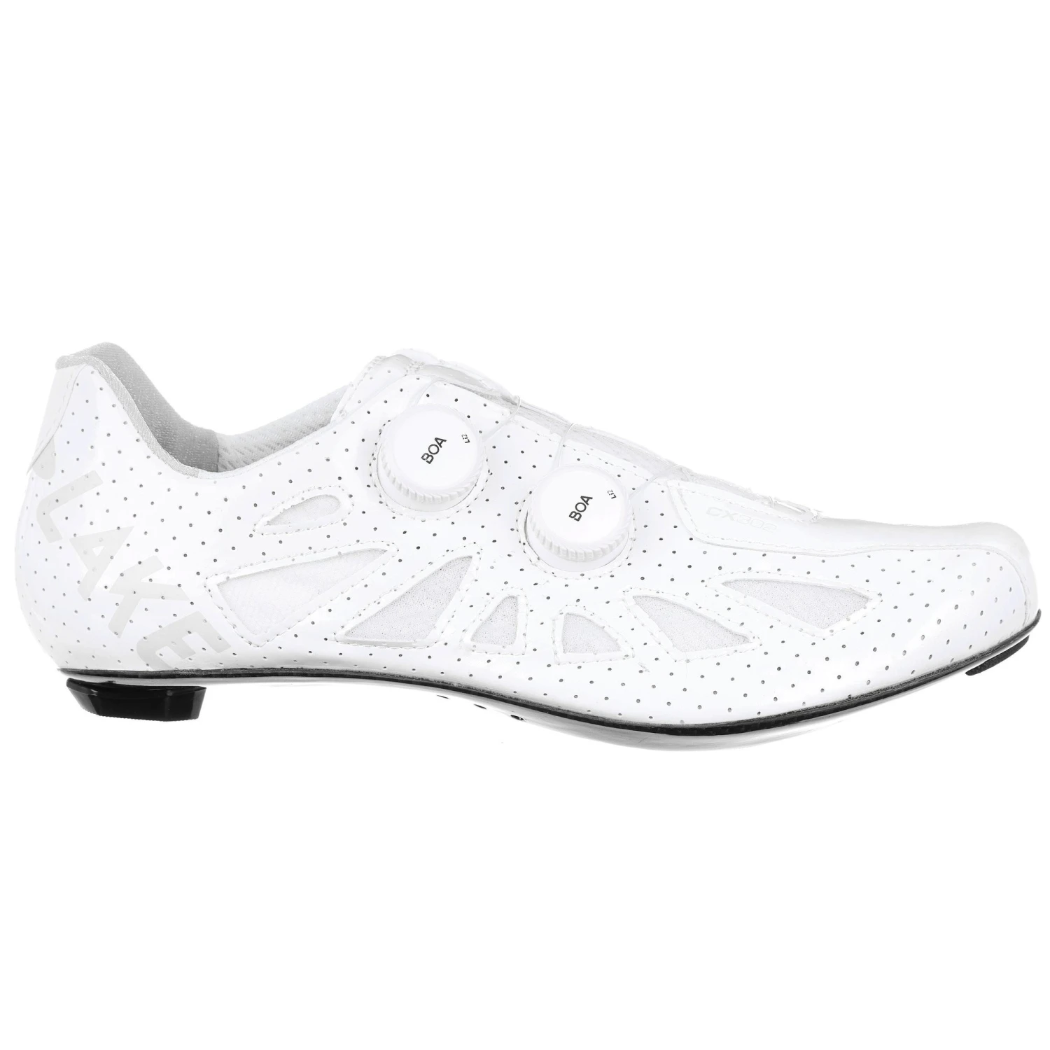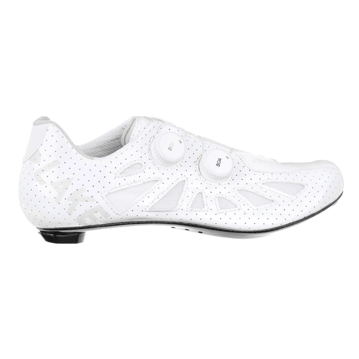 Lake has included their patented double sole that uses a semi-flexible carbon fibre inner suspended over a rigid carbon outer, creating a stiff platform with some flexibility at the ball of the foot, reducing the chance of swelling or hot spots from excess pressure. A CX Race Last with a narrower toe box and tighter heel means these shoes are good for high cadence and higher pressure riding. This wide version offers 15mm of extra volume at the ball of the foot.
