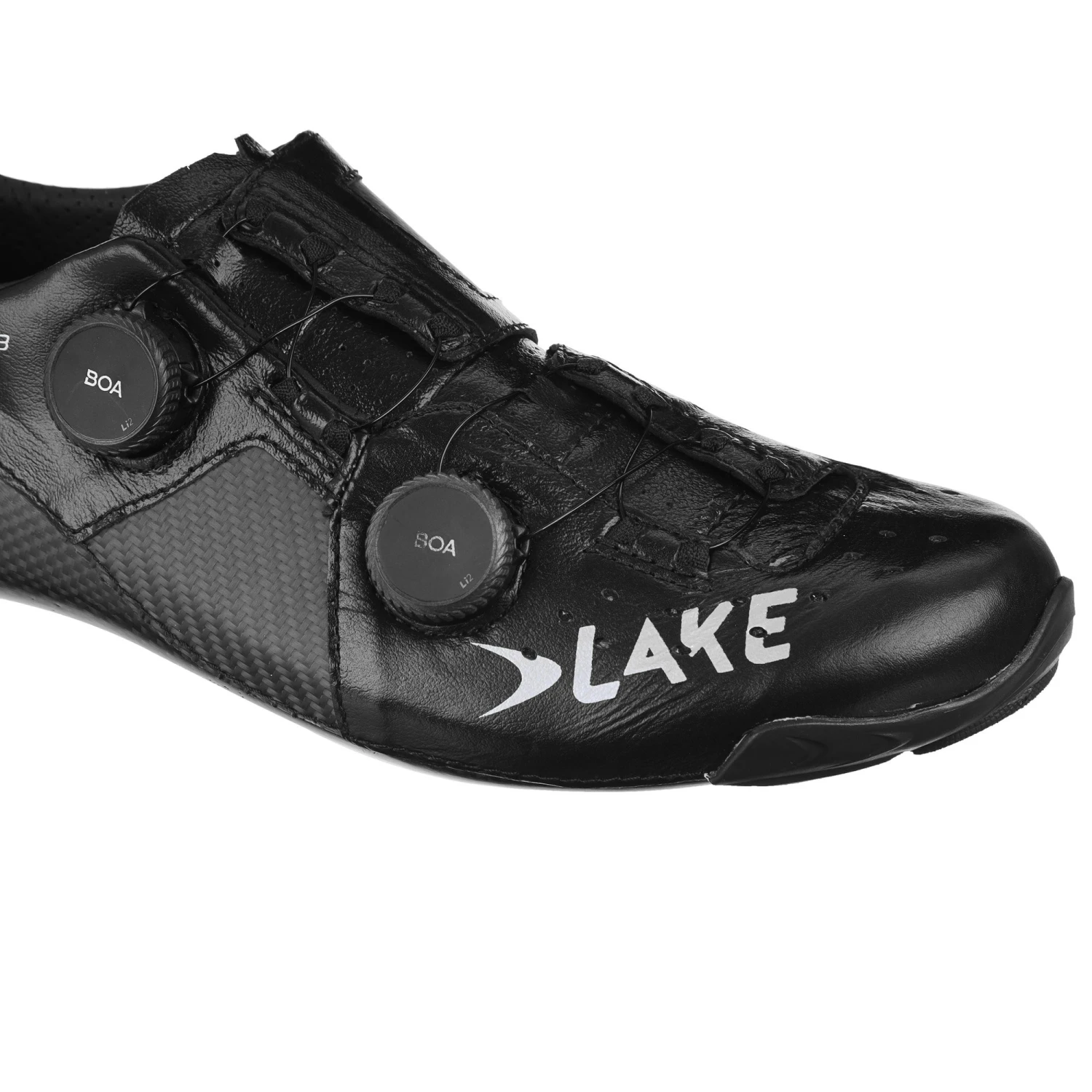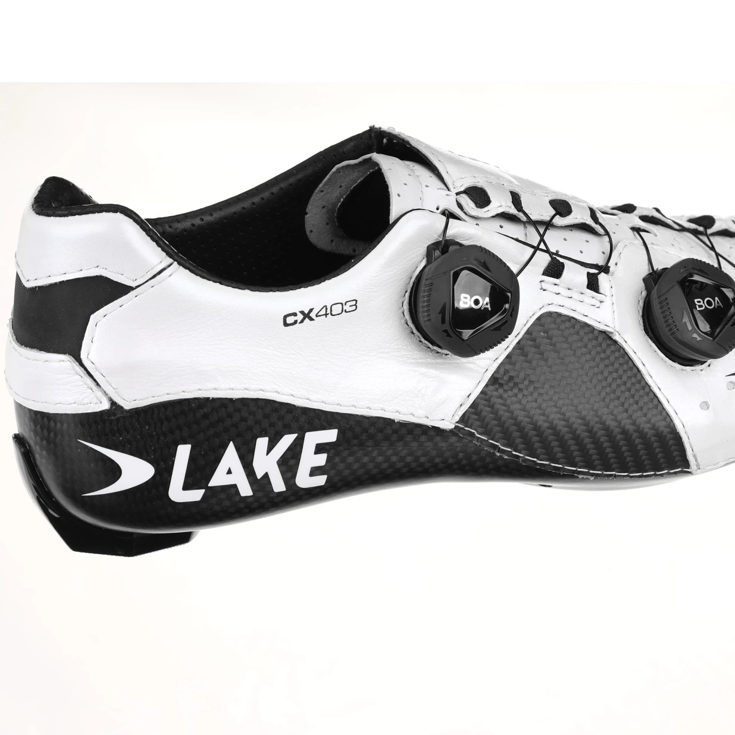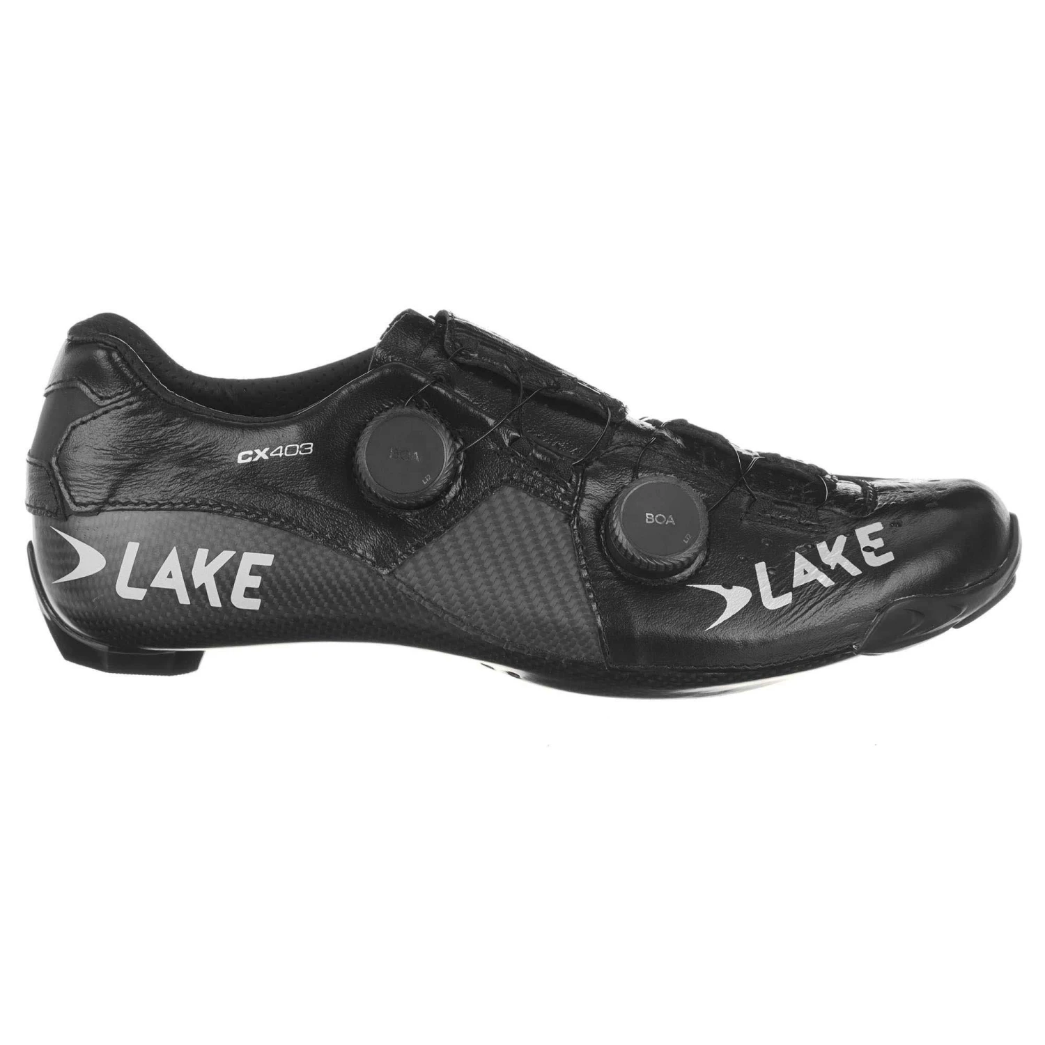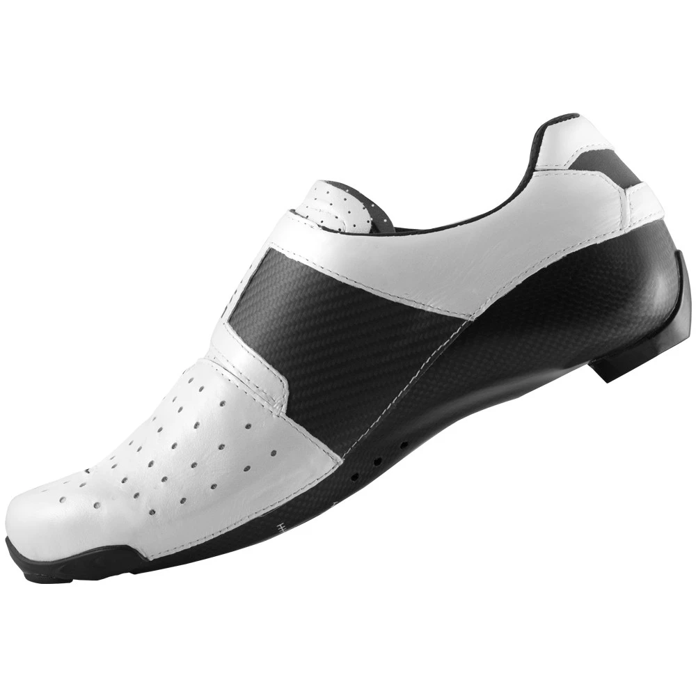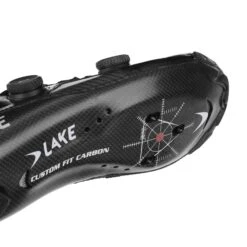 The Lake CX403 Road Cycling Shoes are at the top of their range. The lower overall volume of the CX Race last is ideal for high cadence, high pressure riding with a narrower toe box and tighter heel to prevent slipping when you’re putting the power down. These shoes have several unique features: The upper utilises kangaroo leather that’s incredibly light, breathable and supple, forming to your foot, that works together with carbon structural support panels for stability through the pedal stroke. The carbon fibre sole is customisable in the rear 1/4 through a heat moulding process and consists of a double layer; an incredibly rigid outer to keep power transfer high, plus a semi-flexible inner that’s mouldable so your heel will be locked down and your foot stable.