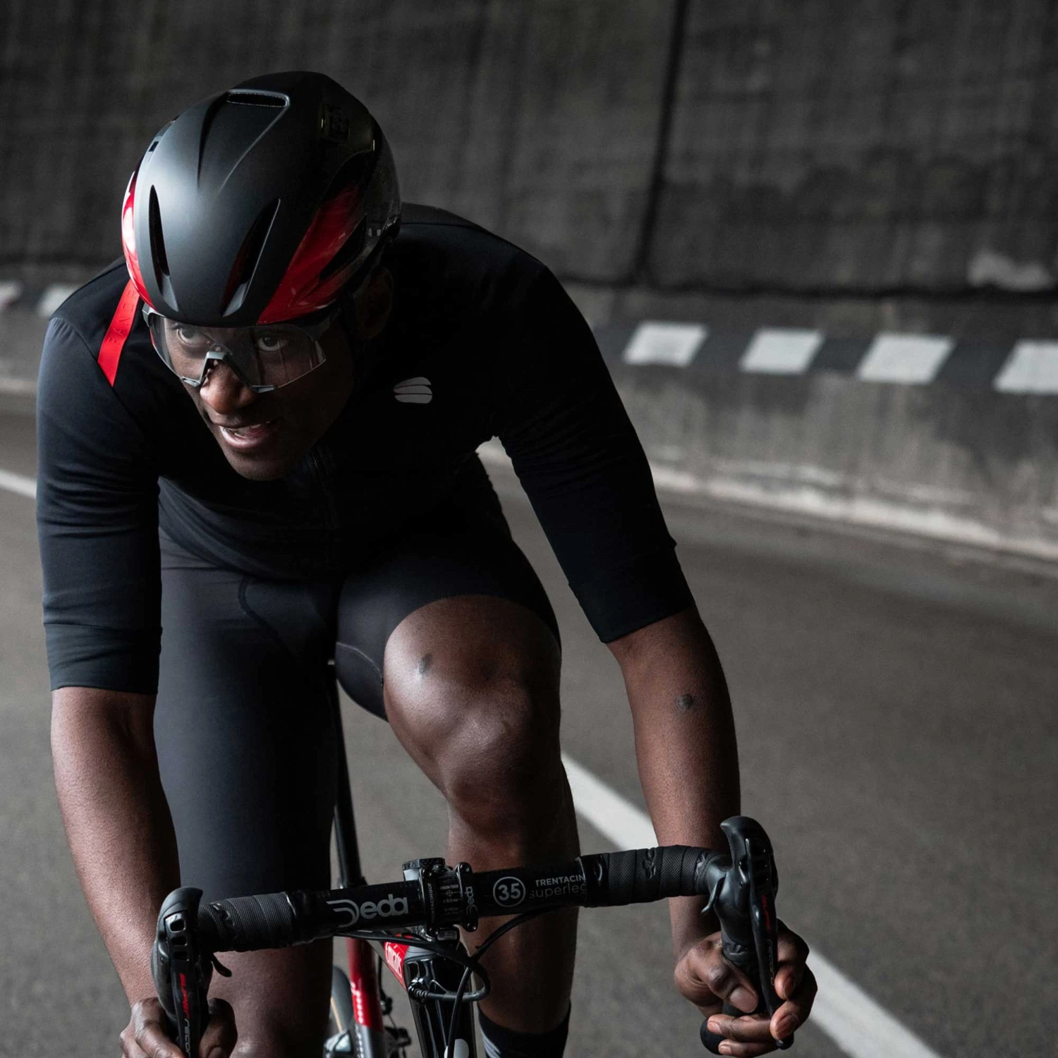 Comfort is assured by the Safe-T Orbital fit system and the adjustable 360° belt that clasps the head securely without causing peak pressure points. The Air Lite straps are soft against the skin and are fastened by a magnetic Fidlock buckle that promotes quick and easy operation.