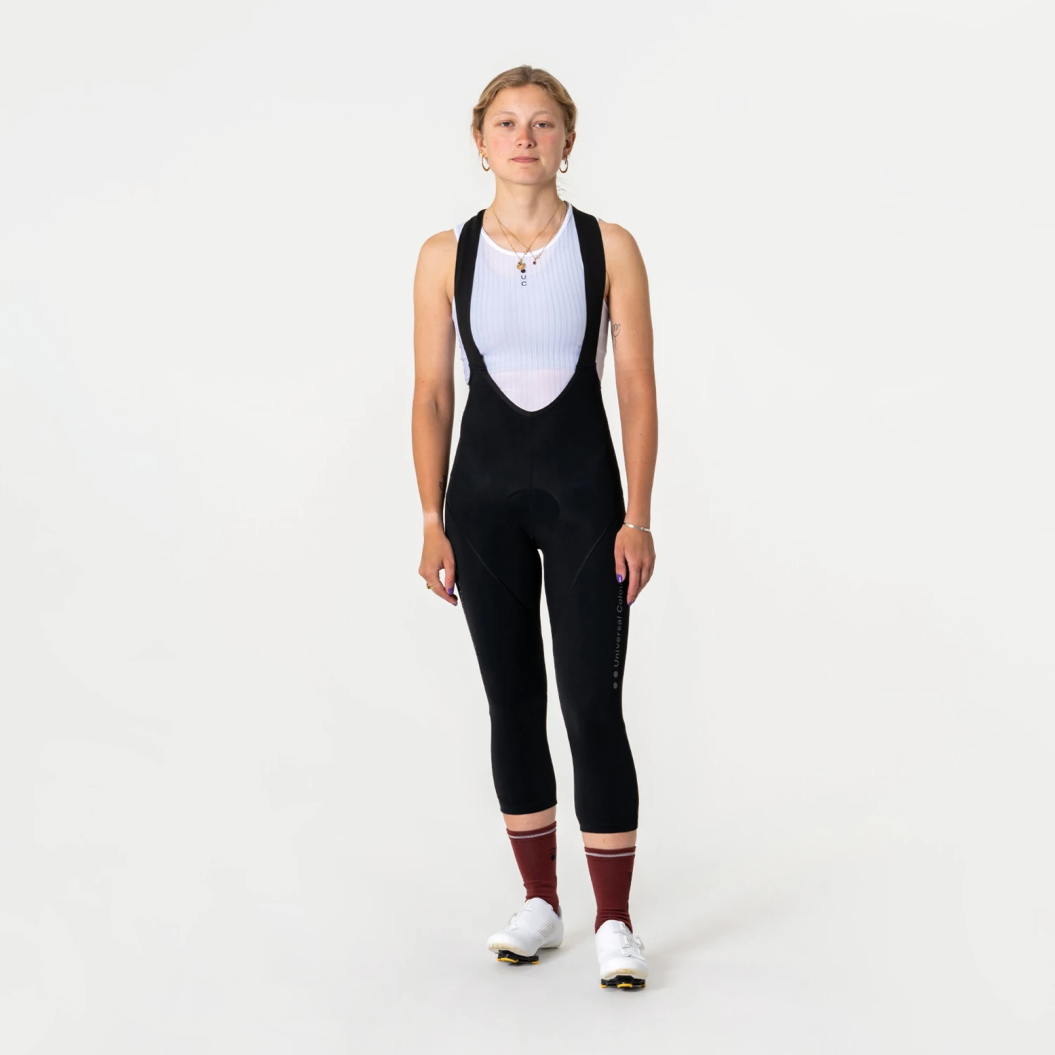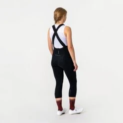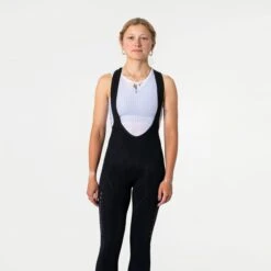 The Universal Colours Mono Women’s Bib Knicker protects your knees without providing the full thermal protection of a winter tight. The Italian nylon has a brushed back for insulation and a soft feel, and its high stretch means no restriction to pedalling. A PFC-free DWR treatment repels light rain and road spray so you’re well protected in the event of a sudden shower.;