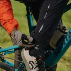 The Dirt Roamer Storm Pant from Patagonia has been designed specifically for mountain biking, with a cut that works on the bike and accommodates pads. Despite being a waterproof trouser, it can happily be worn over shorts and next to the skin thanks to the soft-knit backer, whilst the 3-layer H2No fabric keeps the weather out yet remains breathable. Heavier-duty abrasion-resistant nylon material prevents wear on contact areas and an MTB-specific OppoSet® waistband provides a good, secure fit without fouling a rucksack’s waist belt. Two zipped thigh pockets offer secure storage and the whole garment is Fair Trade Certified sewn.
