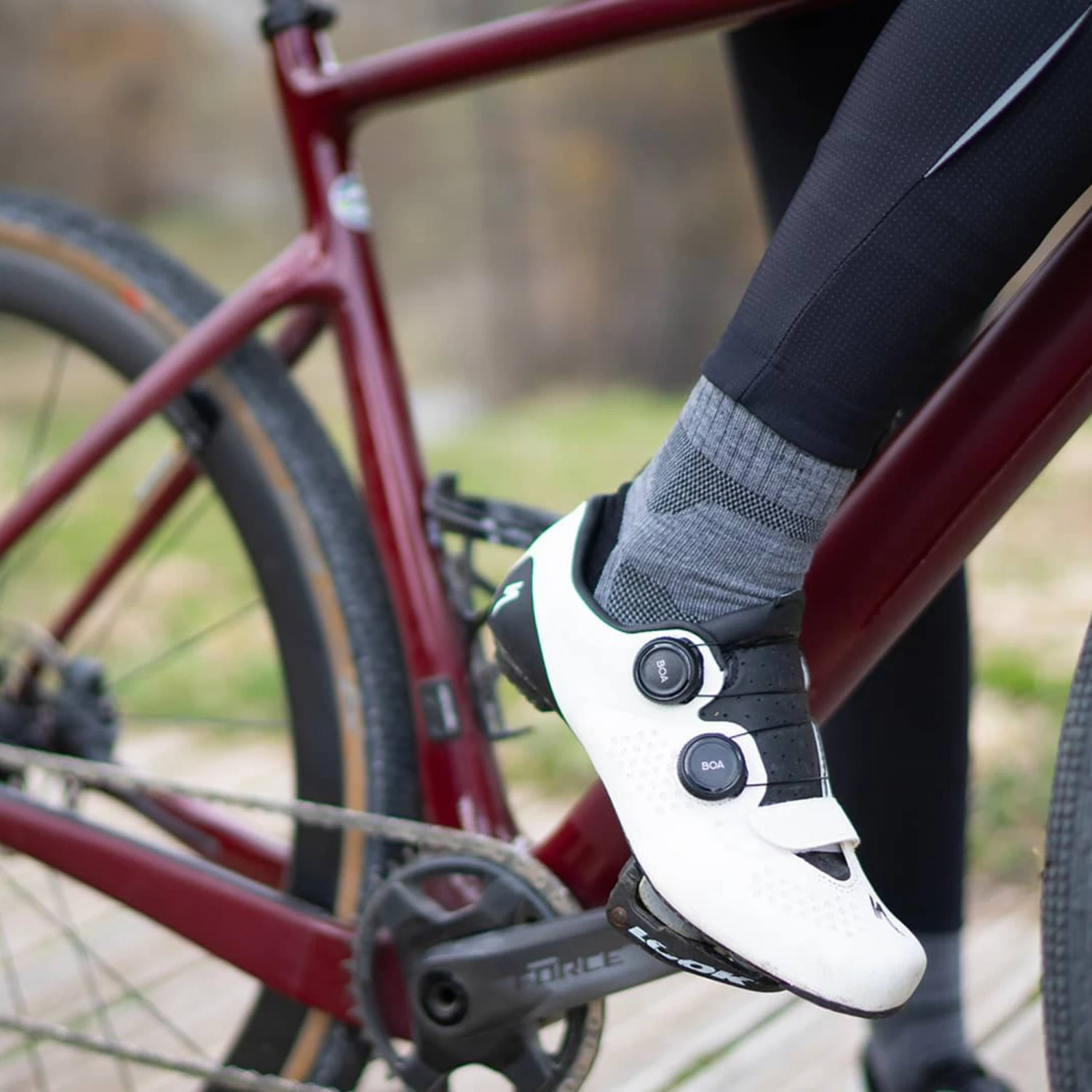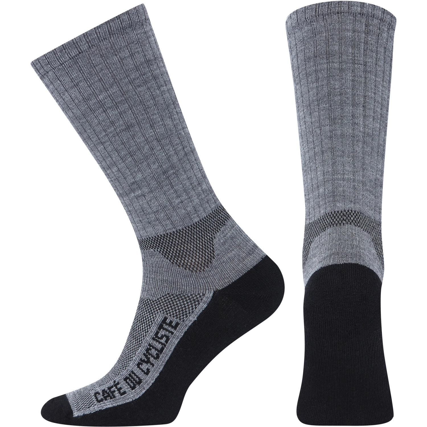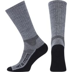 The combination of merino wool and Primaloft makes these Café du Cycliste Socks a superb choice for cold-weather riding. There is a Primaloft layer under the heel, sole and toes to provide extra insulation where the foot is in contact with the bottom of the shoe, and merino wool provides the thermoregulation elsewhere, ensuring warmth, breathability and comfort. As well as being an excellent insulator, the wool is antimicrobial to prevent nasty smells from developing and good at wicking moisture away from the skin to keep the feet dry.