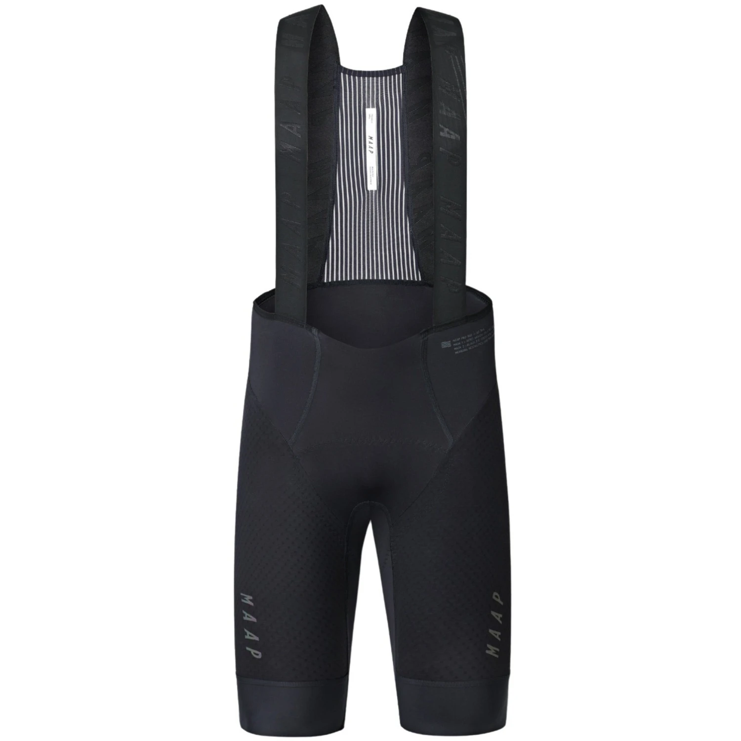 Designed for maximum performance during the most demanding rides, the MAAP Pro 2.0 Bib Short features leg and glute panels made from four-way stretch compression fabric to grant muscle support, enhanced bloodflow and quicker recovery from hard efforts. This material is lightweight, durable, and exceptionally breathable to help riders regulate their temperature during hot weather, while its unique weave reduces aerodynamic drag at fast riding speeds.