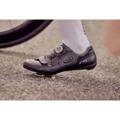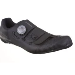 A mid-range road cycling shoe that blends performance with comfort and support, the Shimano RC502s borrow technology from the top-end S-PHYRE models. The nylon sole is reinforced with carbon, making it stiff and efficient, while a low stack height further improves power transfer and stabilises the foot. A combination of mesh, TPU and synthetic leather is used for the upper, and a new pattern brings enhanced breathability and fit, wrapping the foot for a customised feel. A BOA dial and velcro strap take care of closure, allowing plenty of room for adjustments.Â