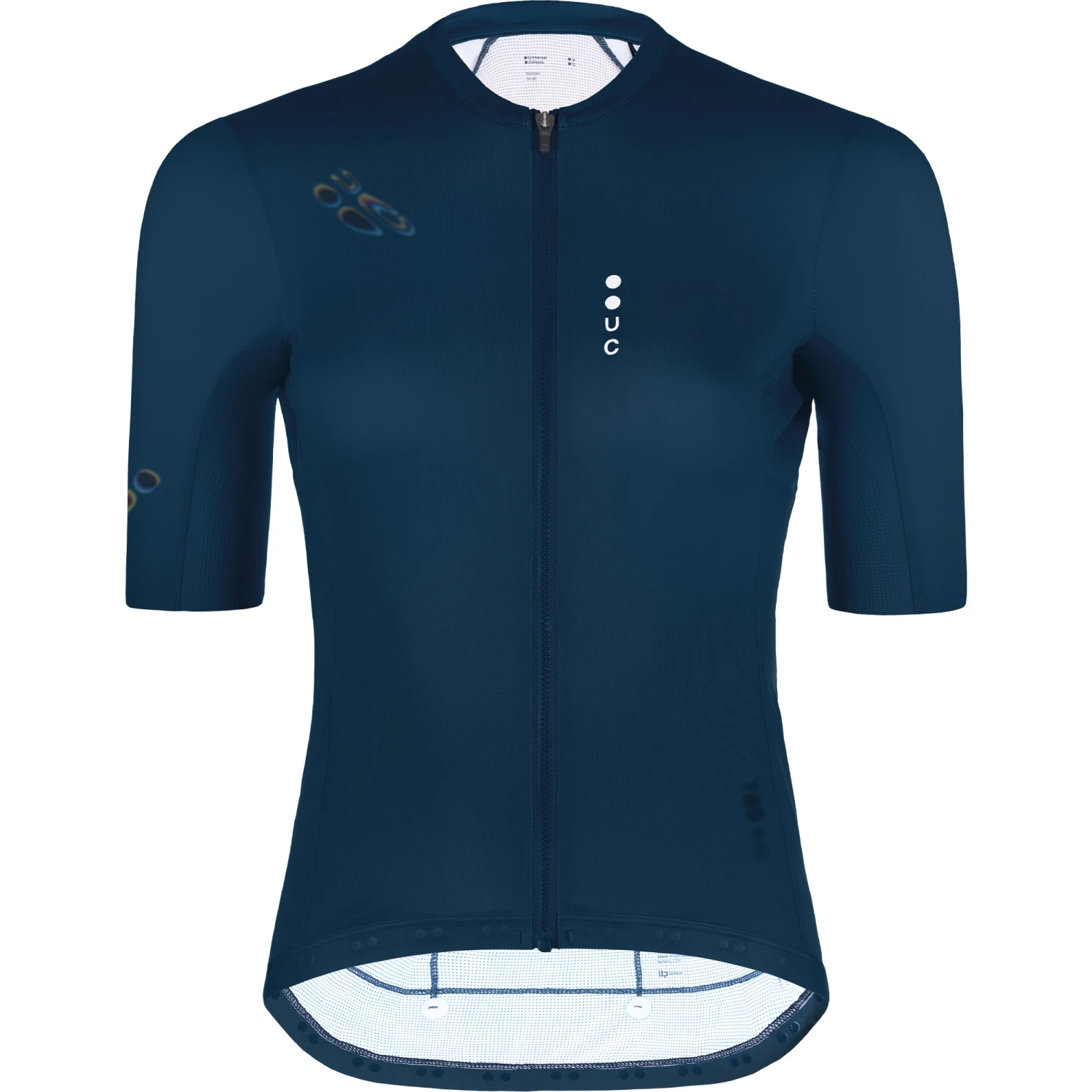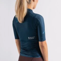 The block colourways and unique logo application of the Universal Colours Spectrum Womens Short Sleeve Jersey are inspired by reflections of light, and create a bold, striking aesthetic that works well with a range of kit. Cut for ergonomics, the garment has rotated armholes, sleek longer length sleeves, and hugs the body, maximising comfort in both aggressive and more relaxed riding positions. Â