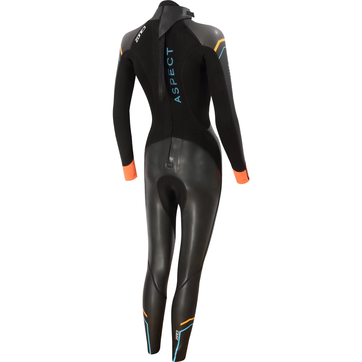 High-quality neoprene materials are used throughout the design to guarantee warmth and durability, and all of the panels have an Aqua-X coating to lower drag and significantly improve speed through the water. An easy to use downward zip helps with quick taking off in transition, and neon orange cuffs increase visibility and safety in open water environments.